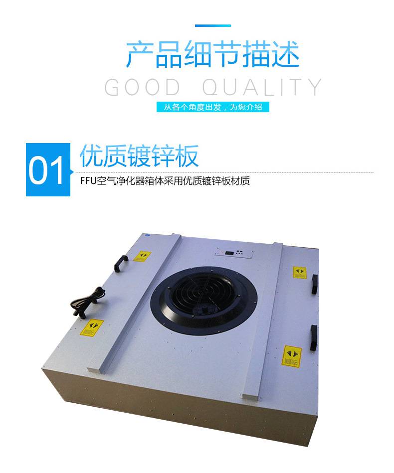FFU風(fēng)機過濾機組控制采用其公司開發(fā)之非接觸感應(yīng)式三檔調(diào)速,電路均采用電器開關(guān)控制,控制安全平穩(wěn)。彈性、多元化配置除標(biāo)準機型外,可根據(jù)客戶需求,制作不同規(guī)格的非標(biāo)產(chǎn)品。如:風(fēng)管連接法蘭、濾網(wǎng)、箱體材質(zhì)等變更。人性化設(shè)計機組附裝不銹鋼把手,使搬運及安裝更為方便快捷。