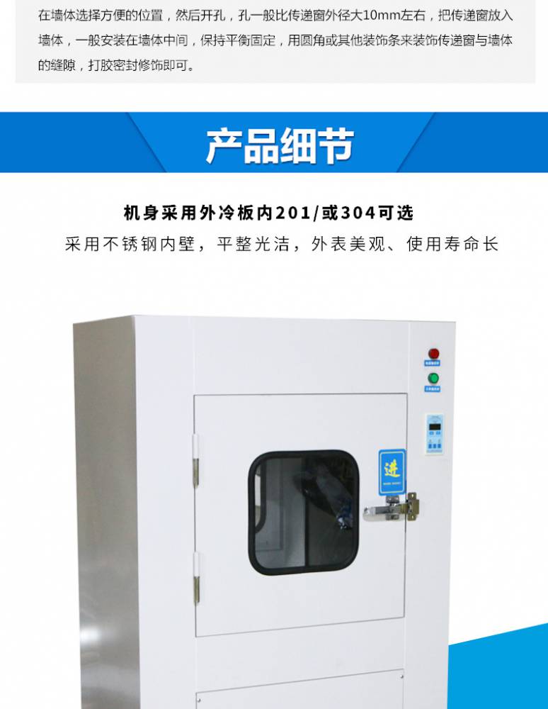 ⒉長(zhǎng)距離傳遞窗工作臺(tái)面采用無(wú)動(dòng)力滾筒,傳遞物品輕松方便