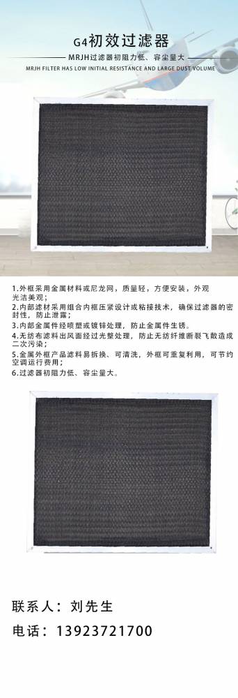 這種效率的過濾器,常用一空調(diào)與通風(fēng)系統(tǒng)的初級(jí)過濾,也適用于只需一級(jí)過濾的簡(jiǎn)單空調(diào)和通風(fēng)系統(tǒng)。