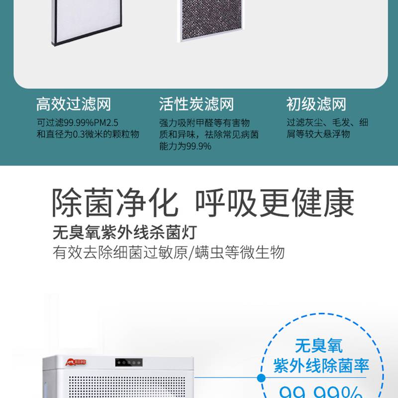 每日凈化空氣凈化器,紫外線快速殺菌、快速除甲醛、PM2.5、過濾煙塵、殺滅細菌和病毒、清除異味、降解有毒化學氣體、凈化清新空氣、呵護人體健康等;多檔風速、多向氣流、及低噪音等。
