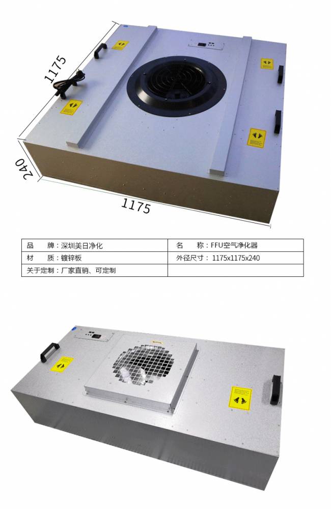 FFU風(fēng)機(jī)過濾機(jī)組控制采用其公司開發(fā)之非接觸感應(yīng)式三檔調(diào)速,電路均采用電器開關(guān)控制,控制安全平穩(wěn)。彈性、多元化配置除標(biāo)準(zhǔn)機(jī)型外,可根據(jù)客戶需求,制作不同規(guī)格的非標(biāo)產(chǎn)品。如:風(fēng)管連接法蘭、濾網(wǎng)、箱體材質(zhì)等變更。人性化設(shè)計(jì)機(jī)組附裝不銹鋼把手,使搬運(yùn)及安裝更為方便快捷。
